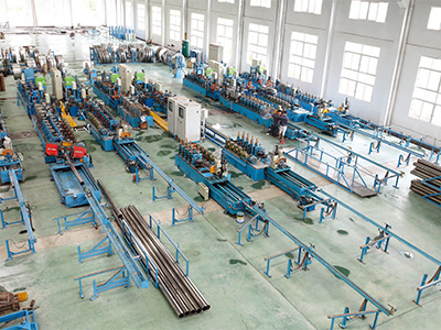 公(gōng)司配置DN15∽DN325不鏽鋼流體(tǐ)管(guǎn)道 製(zhì)管機200多條及內外拋光機、超聲波(bō)清洗、管道酸洗(xǐ)、管(guǎn)道氣密自動檢測、渦(wō)流探傷等設備,設計年產能 10 萬噸不鏽鋼管道(主要產品有水管、氣管、流體用不鏽鋼管、覆塑管(guǎn)、表麵噴塑不鏽鋼管(guǎn), 工程管等)